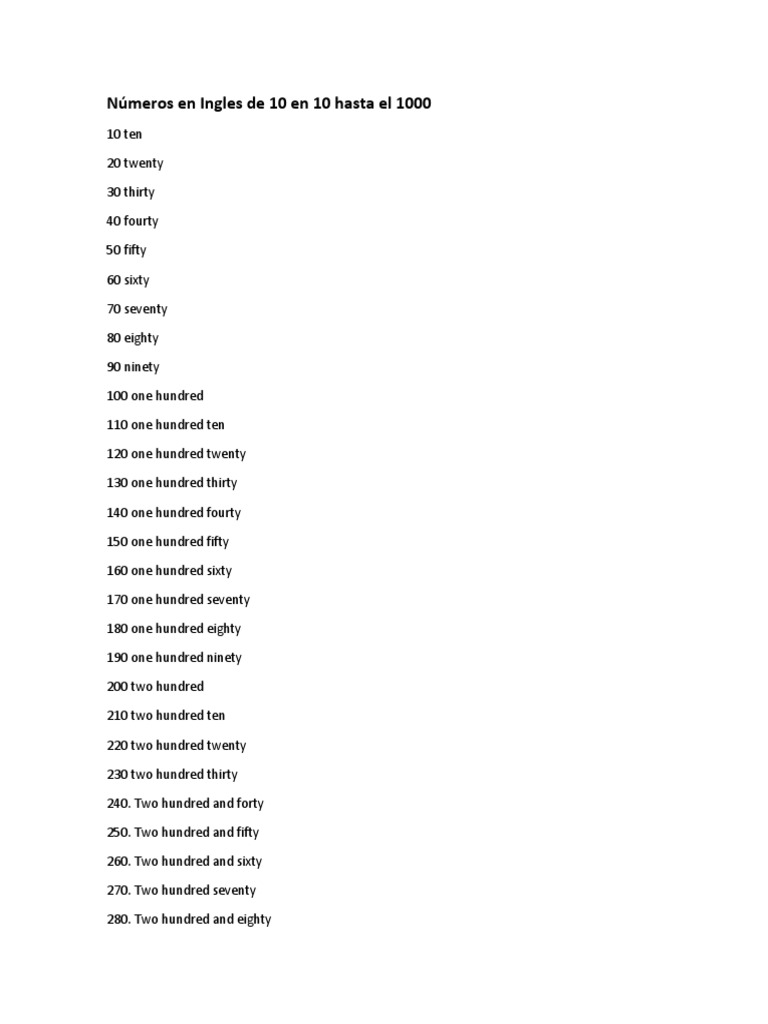 Números En Inglés 1 Al 1000 : Numeros En Ingles Del 0 Al 1000 Numeros En Ingles Historia De La Quimica Ingles / Numeros ingles 1 al 1000.. Si en cambio digo a hundred. La clave para aprender los números en inglés pasa por memorizar estos diez primeros números, ya que del veinte en adelante son simples combinaciones de éstos. Los cientos, miles y millones. Date cuenta que en español a diferencia con inglés nosotros no dividimos los años, en otras palabras se dice el año en forma completa. Si quieres ver algún número más grande en inglés, a continuación hemos preparado una tabla en pdf que podéis descargar con todos los números en inglés del 1 al 1000 del 1 al 999.