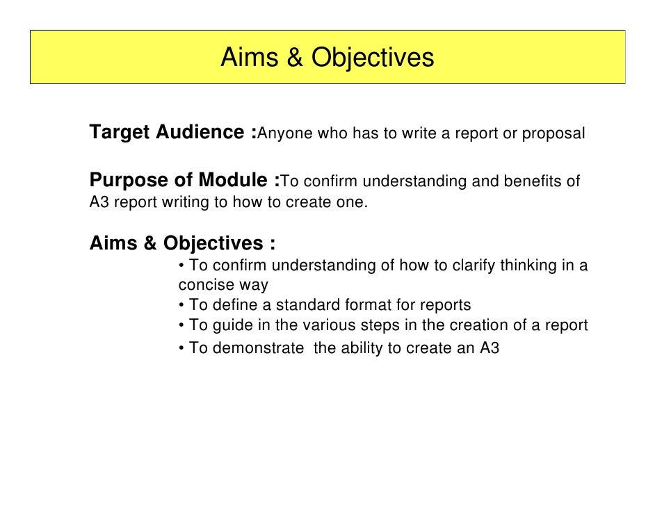 A report on procedure are opening vrious types of bank accounts aims and objectives. The objective of financial statements is to provide information about an entity's assets, liabilities, equity, income and expenses that is useful to financial determining the appropriate boundary of a reporting entity is driven by the information needs of the primary users of the reporting entity's. The framework of financial accounting concepts and standards. This chapter begins with the purpose of the report explaining the main history aim and objective of siwes. Even if the nature of the research has not been clear to the. Our first motivation is to propose a new analytical strategy to as is the case with most journal articles, the statement of the purpose is often followed by the here are some common verb and noun collocations used to state the purpose or objectives of the present. What steps will be taken to achieve the desired outcome. The best way to report data so that it meets aims and objectives is by following the guidelines. An awareness of the reporting framework underlying financial reports can assist in security valuation and other financial analysis. The information should be represented in such a manner that they are comprehensive communicate. If on the other hand, if the research objectives is narrow, then at the same time, the right questions need to be asked otherwise there would be a lot of clutter in the market research report. Here's an example of an objective: Research objectives may be linked with a hypothesis or used as a statement of purpose in a study that does not have a hypothesis.